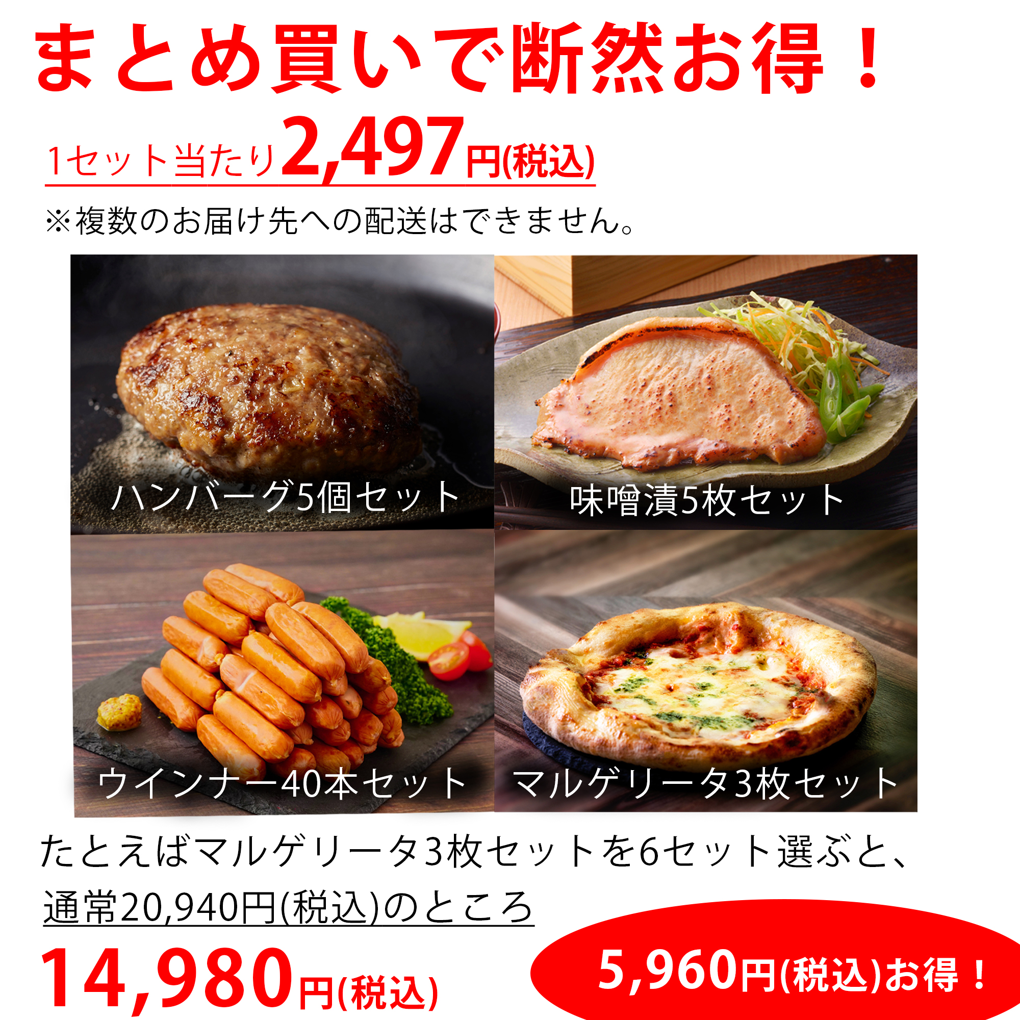 まとめ買いがおすすめ。 6セット同時購入で、よりお買い得にお求めいただけます。 セットは全4種類から自由に組み合わせ可能。 ※お届け先は1か所に限らせていただきます。複数箇所への配送はできませんのでご了承ください。